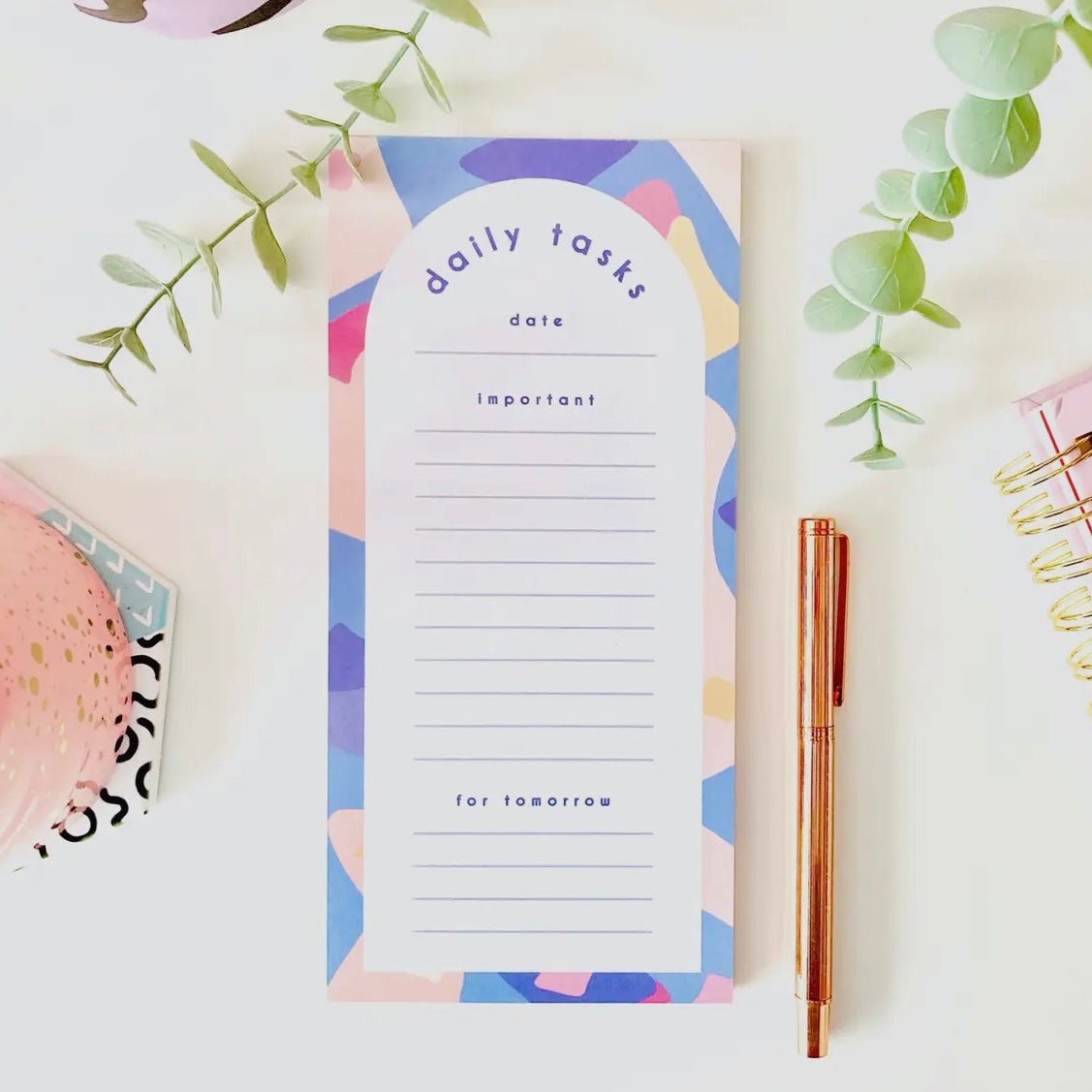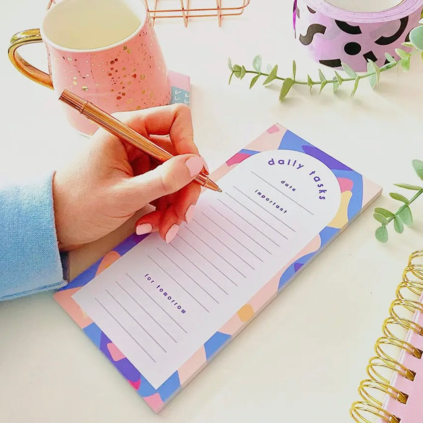Organize and structure your daily schedule with this art-deco inspired to do list desk planner.